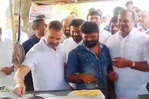 उन्होंने डोसा बनाने के बारे में पूछा और फिर डोसा बनाया। राहुल को डोसा बनाते देख स्थानीय लोग हैरान रह गए। सांसद ने डोसा बनाने वाले से उसकी आय और आने वाली समस्याओं के बारे में भी पूछा। कांग्रेस नेता ने राहगीरों से बातचीत भी की और बच्चों को चॉकलेट भी बांटी।