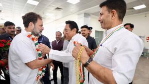 राहुल गांधी भोपाल पहुंचे, कांग्रेस नेताओं ने गर्मजोशी से किया स्वागत