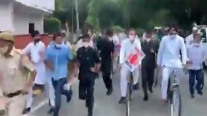 राहुल गांधी के साइकिल मार्च में कांग्रेस के अधीर रंजन चौधरी, कार्ति चिदंबरम, गौरव गोगोई समेत अन्य नेता इस मार्च में दिखाई दिए। बता दें कि संसद में पेगासस जासूसी कांड, महंगाई समेत अन्य मुद्दों को लेकर विपक्षी दलों के सांसदों का हंगामा लगातार जारी है। विपक्ष सरकार से इन मुद्दों पर जवाब की मांग कर रहा है, सरकार विपक्ष की मांगों को बेबुनियाद बता रही है। सरकार का कहना है कि संसद नहीं चलने देने से विपक्ष लोकतंत्र और जनता का अपमान कर रहा है।