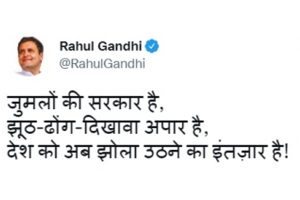 नई दिल्ली। कांग्रेस के पूर्व अध्यक्ष राहुल गांधी (Rahul Gandhi) ने सैन्य गतिरोध के बावजूद भारत-चीन व्यापार (India-China Trade) 100 अरब डॉलर का आंकड़ा पार करने (Crosses $100-bn mark ) पर बुधवार को केंद्र पर कटाक्ष किया (Slams Centre) । उन्होंने हिंदी में एक ट्वीट में कहा, “जुमलों की सरकार है, झूठ ढोंग दिखावा उपर है, देश को अब झोला उठने का इंतजार है।”
