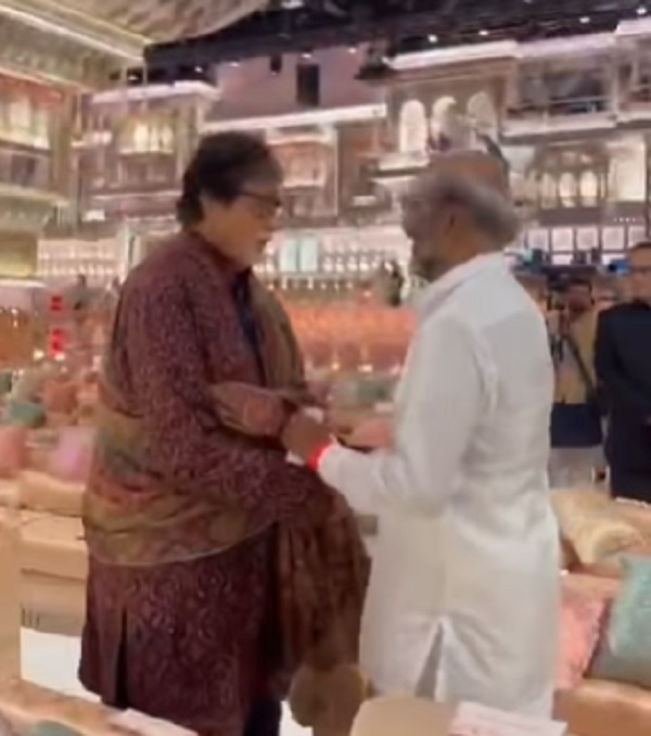 • अनंत अंबानी के वेडिंग रिसेप्शन में अमिताभ ने छुए रजनीकांत के पैर
