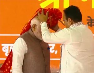 प्रधानमंत्री नरेंद्र मोदी अब जनसभा को संबोधित करने के लिए मंच पर आ गए हैं। यहां राजस्थान के मुख्यमंत्री भजनलाल शर्मा ने उन्हें साफा पहनाकर सम्मानित किया और उन्हें चरखा भेंट किया। प्रधानमंत्री नरेंद्र मोदी ने 26 हजार करोड़ रुपये की विकास परियोजनाओं का शिलान्यास और उद्घाटन किया।