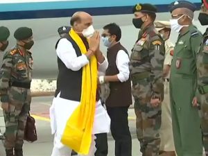 नई दिल्ली। चीन के साथ लगी सीमा पर तनाव के बीच रक्षा मंत्री राजनाथ सिंह लेह पहुंच गए हैं। वह दो दिन तक जम्मू-कश्मीर और लद्दाख में ही रहकर सेना से हर अपडेट लेंगे। उनके साथ चीफ ऑफ डिफेंस स्टाफ जनरल बिपिन रावत और आर्मी चीफ जनरल एमएम नरवणे भी गए हैं। ऐसे वक्त में जब बॉर्डर से चीनी सेना पीछे हट रही है, रक्षा मंत्री का लद्दाख में होना बेहद अहम है। लाइन ऑफ एक्चुअल कंट्रोल पर कई स्टैंडऑफ पॉइंट्स से चीनी सैनिक पीछे हटे हैं, लेकिन उसपर भरोसा नहीं किया जा सकता। पुराने अनुभवों को देखते हुए पूरी सावधानी बरती जा रही है। सीमा तनाव के बीच रक्षा मंत्री का यह दूसरा लेह दौरा है, सेना भी चौकन्नी है।