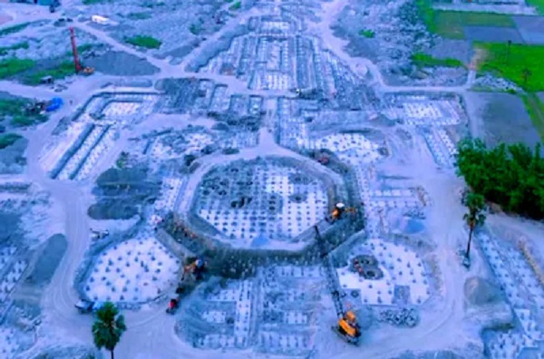 पटना (Patna) । बिहार (Bihar) के पूर्वी चंपारण जिले (East Champaran District) के केसरिया-चकिया मार्ग में बन रहे विराट रामायण मन्दिर (Ramayan Temple) का निर्माण तेजी से चल रहा है. 20 जून, 2023 से प्रथम चरण का कार्य प्रारम्भ हुआ जिसमें जमीन के नीचे 100 फीट गहराई तक 3200 भूगर्भ-स्तम्भों (पाइल) का निर्माण 10 महीनो में पूरा कर लिया गया. जमीन के नीचे काम में काफी कठिनाई होती है जिसे कामयाबी के साथ पूरा किया गया.