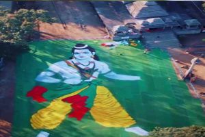 जमशेदपुर के केबुल टाउन स्थित स्वामी लक्ष्मीनारायण मंदिर के परिसर में विवेक मिश्रा 18 हजार वर्ग फुट क्षेत्र में श्रीराम की छवि वाली रंगोली बना रहे हैं। उनके मुताबिक इतनी बड़ी पोट्रेट रंगोली दुनिया में आज तक नहीं बनाई गई है। वे बीते 5 जनवरी से इस काम में जुटे हैं और 20 जनवरी तक इसे पूरा कर लिया जाएगा। इस रंगोली को ड्रोन कैमरे की सहायता से एलईडी स्क्रीन पर प्रदर्शित किया जाएगा।