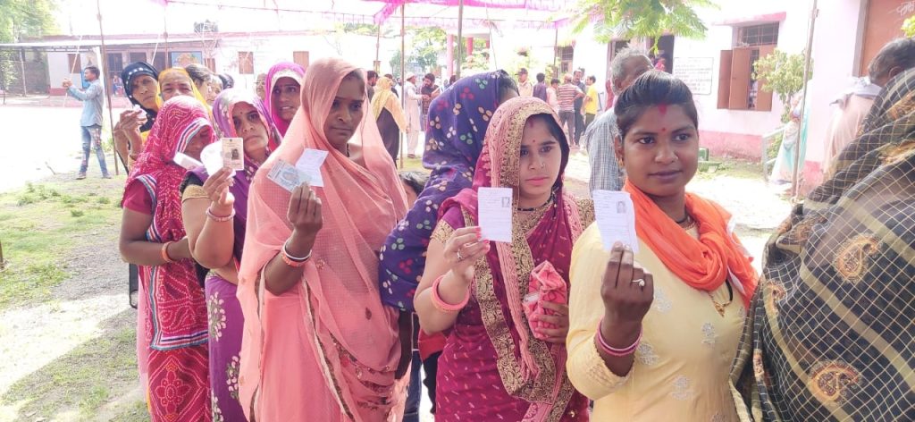 • मतदान के लिए महिलाओं में उत्साह, लगी लंबी लाइन