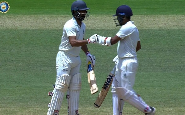 दो विकेट के पतन के बाद बल्लेबाजी के लिए आए रजत पाटीदार ने आक्रामक अंदाज में बल्लेबाजी 44 गेंदों में अपना अर्धशतक पूरा कर लिया। उन्होंने तीसरे दिन के आखिरी सत्र में टीम को कोई और नुकसान नहीं होने दिया। पाटीदार ने 106 गेंदों का सामना करते हुए 13 चौकों की मदद से 67 रन बना लिए हैं। दूसरी तरफ कप्तान श्रीवास्तव ने 11 रन बनाकर मोर्चा संभाला हुआ है।