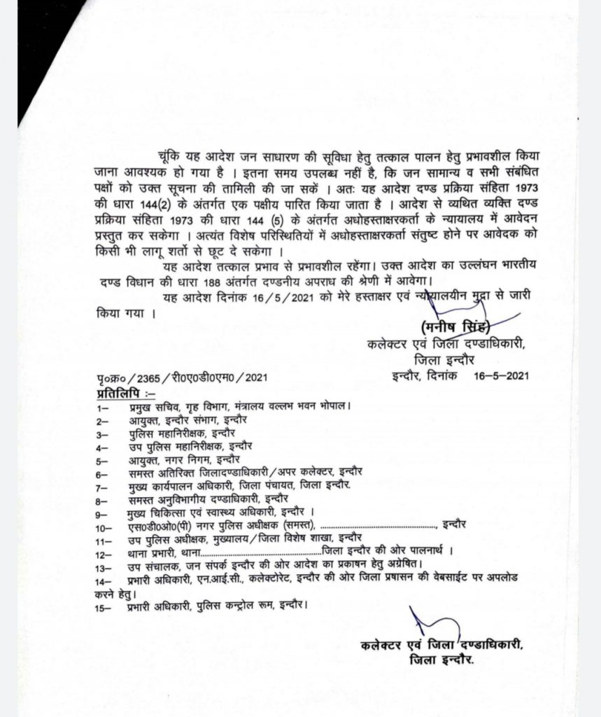इंदौर वालों को कोरोना कर्फ्यू में राहत