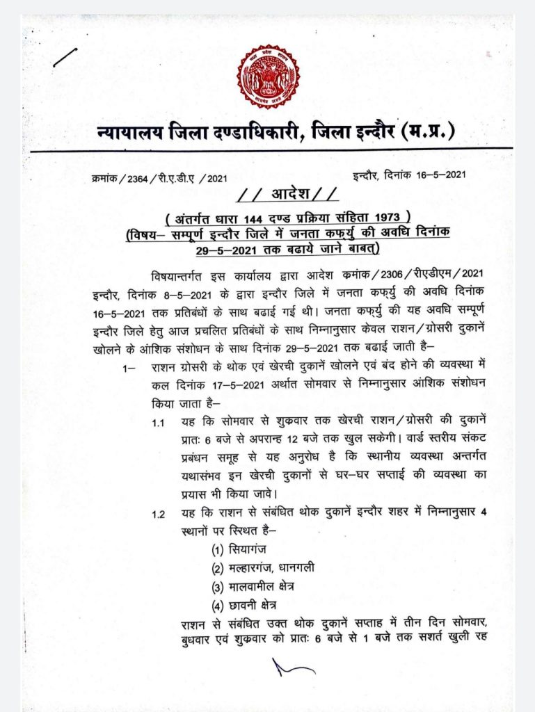 इंदौर वालों को कोरोना कर्फ्यू में राहत