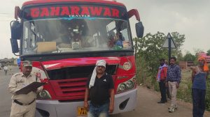 रीवा, जिला संवाददाता शिवम् पाठक। रीवा परिवहन सुरक्षा स्क्वाड द्वारा परिवहन आयुक्त महोदय ग्वालियर एवं कलेक्टर महोदय रीवा के आदेशानुसार यात्री बसों के विरुद्ध लगातार सघन चेकिंग अभियान चलाया जा रहा है। जिसमें आज दिनांक को 10 बसों पर चालानी कार्यवाही की गई जिसमें 2 बसें ओव्हरलोड एवं 8 बसे परमिट शर्तों की अन्य धाराओं का उल्लंघन करते हुए चलती पाई गईं। चेकिंग के दौरान ही ट्रक क्रमांक CG10C8411 गोविंदगढ़ रोड पर चलता हुआ पाया गया जिसे रोक कर चेक किया गया तो उक्त वाहन में मध्य प्रदेश राज्य का परमिट नहीं पाया गया,वाहन का मोटरयान कर भी जमा नहीं पाया गया । परिवहन दस्ते द्वारा उक्त वाहन को जप्त कर परिवहन कार्यालय रीवा में खड़ा कराया गया है। परिवहन स्टाफ के द्वारा कल चलाए गए संयुक्त चेकिंग अभियान में 209100 रुपए का राजस्व अर्जित किया गया। चेकिंग अभियान रीवा आर टी ओ के निर्देशन में परिवहन सुरक्षा स्क्वाड प्रभारी रीवा द्वारा सीधी एवं गोविंदगढ़ रोड पर चलाया गया। परिवहन विभाग का चेकिंग अभियान लगातार जारी रहेगा।