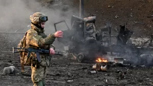 कीव । रूसी सैनिकों (Russian Soldiers) ने शनिवार तड़के यूक्रेन की राजधानी कीव (Ukraine’s capital Kiev) में प्रवेश किया और सड़कों पर (On the Streets) घमासान जारी (Fighting Continues) है । रूसी धमाकों (Russian Blasts) से दहल उठी (Stirred up) यूक्रेन की राजधानी । स्थानीय अधिकारियों ने लोगों से छुप जाने की अपील की है।