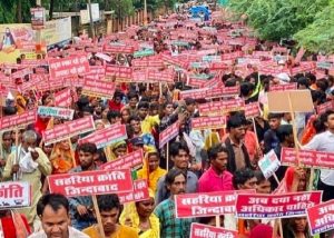 स्थानीय फिजिकल रोड विवेकानंदपुरम से बरसते पानी में हजारों हजार महिला पुरुष युवा बुजुर्ग ग्रामीण अंचल में अपना काम छोड़कर इस रैली में शामिल होने उमड़ पड़े। आलम यह था कि जहां रैली का एक छोर 3 से 4 कतारों में झांसी चौराहे पर था तो दूसरा छोर कोर्ट रोड को छू रहा था।