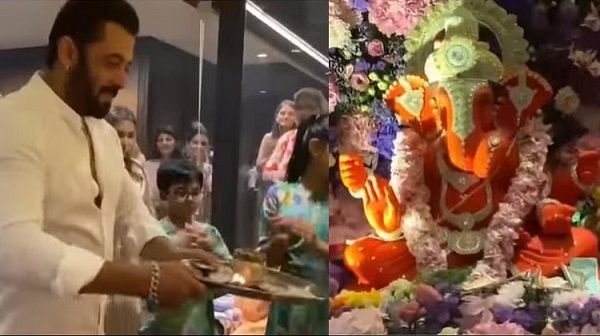 10 दिन तक चलने वाले गणेश चतुर्थी त्योहार की शुरुआत मंगलवार से हुई। सुबह सलमान खान की मां सलमा खान, अर्पिता और परिवार के सदस्यों ने गणपति बप्पा का घर पर स्वागत किया। उनका वीडियो सोशल मीडिया पर वायरल हो गया। सलमान खान और उनका परिवार हर त्योहार धूमधाम से मनाता है। ईद-दिवाली से लेकर गणेश चतुर्थी पर अलग ही रौनक होती है। उनके घर पर हर साल गणपति की मूर्ति की स्थापना की जाती है। अब सलमान ने एक वीडियो शेयर किया जिसमें परिवार के सदस्य आरती कर रहे हैं।