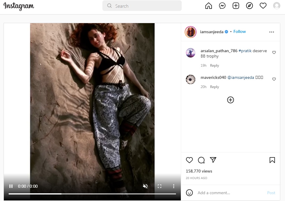 बता दें कि इससे पहले संजीदा शेख ने अपने इंस्टाग्राम पर एक वीडियो पोस्ट किया था। संजीदा का ये वीडियो सोशल मीडिया पर आज भी काफी पसंद किया जा रहा है। इस वीडियो में आप देख सकते हैं कि संजीदा व्हाइट बिकिनी पहन कर जमीन पर लेटी नजर आ रही हैं। इस दौरान वह बोल्ड पोज देती दिख रही हैं। संजीदा ने अपने पैर पर एक राउंड हैट रखा हुआ है। वहीं एक्ट्रेस के इस वीडियो को काफी ऊपर से बनाया गया है।