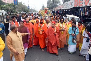 चारधाम मन्दिर में आयोजित होने वाले पाँच दिवसीय संत सम्मेलन से पहले आज सुबह शोभा यात्रा सामाजिक न्याय परिसर से प्रारंभ हुई। इसमें सैकड़ों महिलाएँ अपने सर पर कलश रख आगे-आगे चल रही थीं। यात्रा में धर्म ध्वजा, बैंड बाजे के साथ निकली पेशवाई में बग्गियों पर साधु-संत, मंडलेश्वर, महामंडलेश्वर विराजमान थे। शोभायात्रा पेशवाई के रूप में सामाजिक न्याय परिसर अगर रोड से प्रारंभ होकर देवासगेट, मालीपुरा, दौलत गंज, नई सड़क, सतीगेट, सराफ, गोपाल मन्दिर, पटनी बाजार, गुदरी, चौबीस खम्बा से होते हुए चार धाम मन्दिर पहुँची। आयोजन समिति के अनुसार आज से 17 दिसंबर तक आयोजित होने जा रहे संत सम्मेलन में रामकथा एवं रास लीला का आयोजन किया जाएगा।