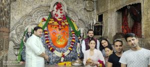 इंदौर (Indore)। शनिवार को इंदौर आई अभिनेत्री सारा अली खान (actress sara ali khan) श्री खजराना गणेश मंदिर पहुंची और पुजारियों के साथ श्री खजराना गणेश (Khajrana Ganesh) का विधिवत पूजन अर्चन किया। 2 जून को रिलीज हुई फिल्म ‘जरा हटके जरा बचके’ की सफलता के बाद सारा अली खान ही नहीं, विक्की कौशल भी मंदिर पहुंचकर फिल्म की सफलता के बाद भगवान का आशीर्वाद ले रहे हैं।