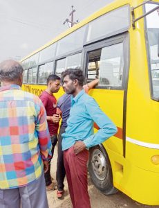 स्कूल बस का ड्राइवर नशे में, बाल-बाल बची कार