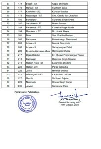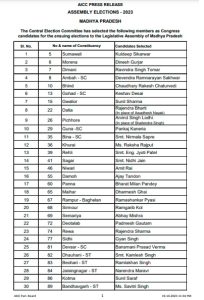कांग्रेस ने भोपाल की चारों विधानसभा सीटों (All four assembly seats of Bhopal) पर भी प्रत्याशियों के नाम का एलान किया। भोपाल की दक्षिण पश्चिम सीट पर विधायक पीसी शर्मा, उत्तर सीट पर आरिफ अकील के बेटे आतिफ अकील, हुजूर में पूर्व प्रत्याशी नरेश ज्ञानचंदानी और गोविंदपुरा में दिग्विजय सिंह समर्थक रविंद्र साहू को प्रत्याशी बनाया है। खातेगांव से भाजपा छोड़कर कांग्रेस में शामिल होने वाले दीपक जोशी पर भरोसा जताया है। इंदौर में तीन नंबर से पिंटू जोशी, इंदौर में पांच नंबर से सत्यनारायण पटेल को प्रत्याशी बनाया गया है।