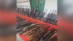 जब्त किए गए हथियारों में 151 एसएलआर राइफलें, 65 इंसास राइफलें, 73 अन्य राइफलें, 5 कार्बाइन गन, 2 एमपी5 गन, 12 एलएमजी राइफलें, 6 एके-सीरीज राइफलें, 2 अमोघ राइफलें, 1 एआर-15 राइफल, 1 मोर्टार, 6 पिस्तौलें, 2 गन बैरल और 2 फ्लेयर गन शामिल हैं.