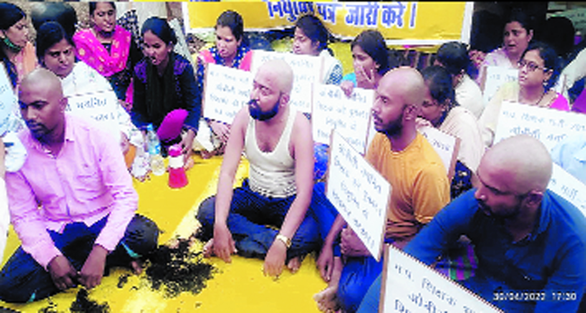 भीषण गर्मी में जारी आमरण अनशन की वजह से शिक्षकों की तबियत भी खराब हो रही है। अब तक पांच लोगों की तबियत खराब हो चुकी है, जिन्हें ग्लूकोज चढ़ाया जा रहा है। शनिवार को चयनित शिक्षकों में पुरुषों ने सामूहिक रूप से मुंडन कराकर विरोध किया। वहीं महिलाओं ने जूते पालिश कर प्रदर्शन किया। इसमें से टीकमगढ़ के ब्रजभूषण यादव, बुधनी के धरम पवार, रीवा के आनंद भारती व गुना के मिथुन धाकड़ सहित अन्य ने मुंडन कराया। चयनित शिक्षकों का कहना है कि शासन की ओर से कोई भी सुध नहीं ली जा रही है। जब तक उनकी मांग नहीं मानी जाएगी। उनका आंदोलन जारी रहेगा। अभ्यर्थी शशि यादव ने कहा कि एक माह से आंदोलन जारी है, लेकिन मुख्यमंत्री ध्यान ही नहीं दे रहे हैं। ग्वालियर की अंजुम परवीन ने कहा कि सभी वर्ग के लोगों को नियुक्ति मिल गई है। हमें भी जल्द से जल्द नियुक्ति दी जाए। अभ्यर्थियों का कहना है कि मध्य प्रदेश शिक्षक पात्रता परीक्षा 2018 में 17 हजार पद और जनजातीय कार्य विभाग में दो हजार पदों पर भर्ती के लिए विज्ञापन जारी हुआ था जिसकी परीक्षा फरवरी 2019 में आयोजित की गई थी। इसमें 15000 पदों पर 27 फीसद आरक्षण के साथ ओबीसी के पदों पर भर्ती की गई थी। चयन प्रक्रिया 10 जनवरी 2020 से जुलाई 2021 तक चली। चयन सूची और प्रतीक्षा सूची में नाम आने के बाद दस्तावेजों का सत्यापन किया गया था। चयन होने के बाद भी ओबीसी उम्मीदवारों कि अब तक पदस्थापना सूची जारी नहीं की गई है। उनका कहना है कि वर्तमान में 6500 से ज्यादा पद खाली होने के बाद भी ओबीसी उम्मीदवारों की चयन सूची पर ध्यान नहीं दिया जा रहा है और ना ही पदस्थापना सूची जारी की जा रही है। इसे लेकर दो हजार से ज्यादा ओबीसी उम्मीदवार पदस्थापना को लेकर चिंतित हैं। 21 मार्च से डीपीआइ के सामने धरना- प्रदर्शन करने के बाद भी सरकार ने इस ओर कोई ध्यान नहीं दिया है, इसलिए 25 अप्रैल से चयनित शिक्षक अनिश्चितकालीन आमरण अनशन पर बैठने के लिए मजबूर हो गए हैं।