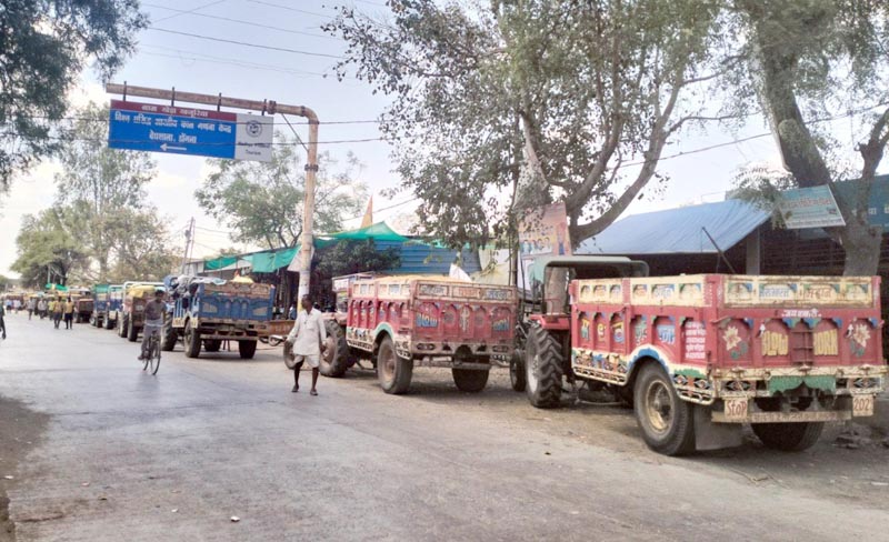 • बाजार में दुकानों के बाहर ट्रैक्टरों की लगी कतार से दुकानदार परेशान