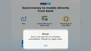 नई दिल्ली: ऑनलाइन पेमेंट ऐप पेटीएम (Paytm) की सर्विस गुरुवार रात ठप हो गई है, जिसके कारण यूजर्स को परेशानी का सामना करना पड़ रहा है. ऐप खोलते ही सर्विस नॉट अवेलेबल प्लीज ट्राई अगेन लेटर (Service Not Available) का मैसेज स्क्रीन पर शो हो रहा है.