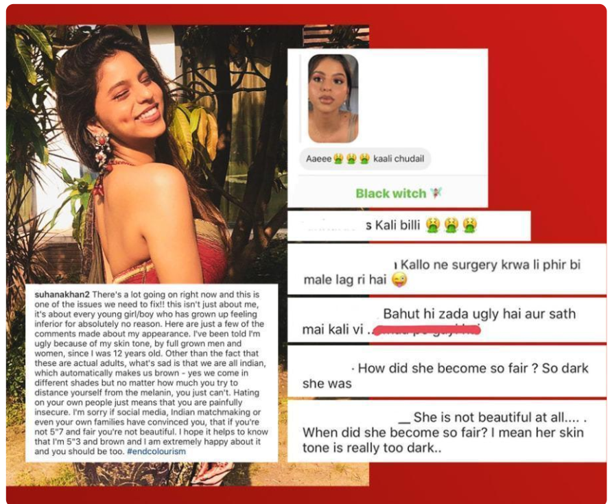 सुहाना ने पोस्ट के आखिर में लिखा कि मैं माफी चाहती हूं अगर सोशल मीडिया, इंडियन मैचमेकिंग और आपके परिवार ने आपको यह यकीन दिलाया हो कि अगर आप 5’7 के नहीं हैं या फिर आपका कलर फेयर नहीं हैं तो आप सुंदर नहीं हैं। उम्मीद करती हूं कि यह आपकी मदद करेगा कि मैं 5’3 इंच की हूं। मेरा कलर ब्राउन है और इसे लेकर बेहद खुश हूं। आपको भी खुश रहना चाहिए।