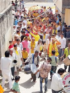 शोभायात्रा निकली, नारायणा धाम मंदिर पर किया ध्वजारोहण