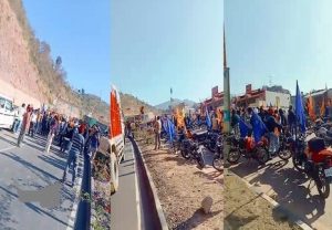 शिमला: हिमाचल प्रदेश के कुल्लू जिले के मणिकर्ण में पंजाबी सैलानियों के हुड़दंग के बाद अब सूबे से लगते पंजाब बॉर्डर पर पंजाबी युवकों ने हंगामा किया है. यहां पर मणिकर्ण घटना के चलते सिख संगत ने हाईवे पर गाड़ियां रोकी हैं. हिमाचल-पंजाब सीमा के श्री कीरतपुर साहिब के पास गारा मोरा गांव में हिमाचल सरकार के खिलाफ रोष जताते हुए पंजाब के युवाओं ने जाम लगाया है.