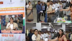 नई दिल्ली। महिला एवं बाल विकास और अल्पसंख्यक मामलों की मंत्री स्मृति ईरानी नई दिल्ली में संसद मार्ग के मुख्य डाकघर में महिला सम्मान बचत प्रमाणपत्र खाता खोला।