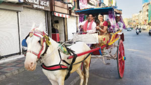 इंदौर। मालवा की संस्कृति बताने के लिए इंदौर में एक गाने की शूटिंग चल रही है। इंदौर के अलावा मुंबई से आई टीम आज दिनभर गाने की शूटिंग के लिए महू, जानापाव और पातालपानी भी जाएगी। गाने के शूट के लिए आज सुबह-सुबह राजबाड़ा पर इंदौर के लोगों को सजा-संवरा तांगा भी नजर आया।