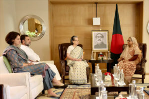 इस मुलाकात में कांग्रेस सांसद राहुल गांधी और कांग्रेस महासचिव प्रियंका गांधी वाड्रा भी मौजूद रहीं। कांग्रेस ने मुलाकात की आधिकारिक जानकारी देते हुए बताया कि कांग्रेस संसदीय दल की नेता सोनिया गांधी, पूर्व अध्यक्ष राहुल गांधी और पार्टी महासचिव प्रियंका गांधी वाड्रा ने दिल्ली में सोमवार दोपहर बांग्लादेश के प्रधानमंत्री शेख हसीना से मुलाकात की है। कांग्रेस ने मुलाकात की तस्वीरें भी साझा की। मुलाकात के दौरान सोनिया गांधी ने गर्मजोशी से शेख हसीना को गले लगाया।