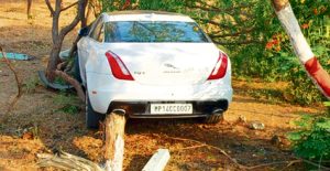 रात को भी अनियंत्रित होकर सडक़ किनारे पेड़ में घुस गई जेग्वार कार