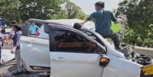 नई दिल्ली: गुजरात (Gujarat) के अहमदाबाद-वडोदरा एक्सप्रेस हाईवे (Ahmedabad-Vadodara Express Highway) पर बुधवार को भीषण सड़क हादसा हो गया. ट्रक और कार की आपस में भिड़ंत हो गई. इस भीषण सड़क हादसे में 10 लोगों की मौत हो गई. प्रत्यक्षदर्शियों ने बताया कि अहमदाबाद-वडोदरा हाईवे पर तेज रफ्तार कार ट्रक के पीछे जा घुसी. घटना स्थल पर चीख पुकार मच गई. हादसे के बाद कार और ट्रक पूरी तरीके से क्षतिग्रस्त हो गए.