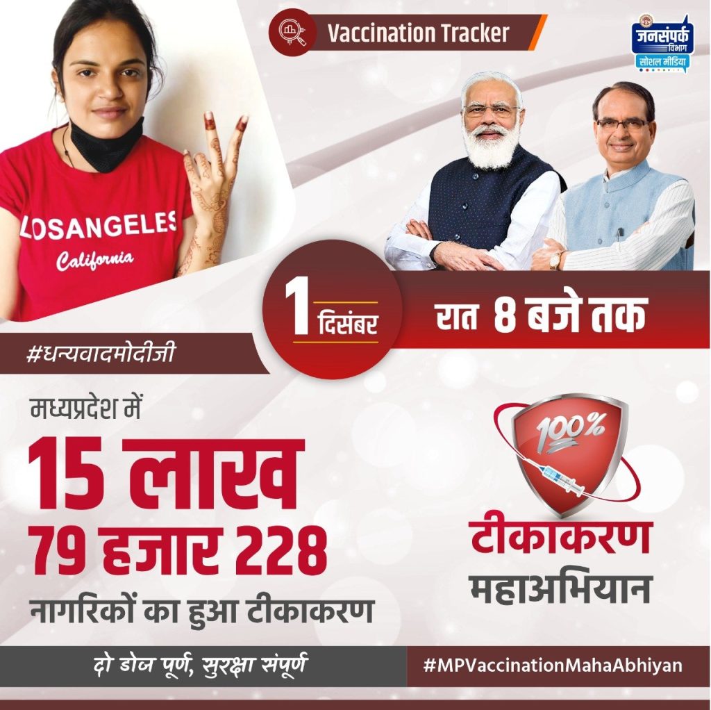 • मप्रः टीकाकरण महाअभियान में बुधवार को लगे 15 लाख 79 हजार से अधिक टीके