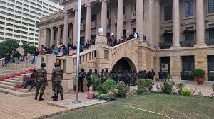 राष्ट्रपति भवन पर प्रदर्शनकारियों के कब्जे के बाद से ही राष्ट्रपति कहां हैं, इसकी जानकारी किसी को नहीं हैं। हालांकि सीएनएन ने सुरक्षा अधिकारियों का हवाला देते हुए कहा कि गोटबाया राजपक्षे प्रदर्शनकारियों के राष्ट्रपति भवन में घुसने के दौरान वहां मौजूद नहीं थे। प्रदर्शनकारियों के वहां पहुंचने से पहले राष्ट्रपति को कहीं और ले जाया गया है, दावा किया गया कि पानी के जहाज पर सवार होने वाले लोग राष्ट्रपति भवन के कर्मचारी थे और ये भी दावा किया गया कि गोटबाया राजपक्षे कोलंबो से भाग निकले हैं।
