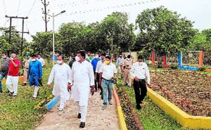 संत नगर। उपनगर में लगभग 2 करोड़ से बनाएं जा रहे संत हिरदाराम गुलाब उद्यान का विधान सभा प्रोटेम स्पीकर रामेश्वर शर्मा ने अवलोकन नगर निगम के अधिकारियों के साथ अवलोकन किया। इस दौरान शर्मा ने अधिकारियों को गुलाब उद्यान के सौन्दर्यकरण एवं उद्यान को भव्य बनाएं जाने संबंधी अनेक निर्देश दिए। इस दौरान शर्मा ने बताया कि बड़े तालाब के किनारे संत हिरदाराम गुलाब उद्यान का निर्माण कराया जा रहा है। शर्मा ने कहा कि हरियाली एवं प्राकर्तिक सौंदर्य के साथ गुलाब उद्यान में चौक चौराहे पर लगायी गयी महा पुरूषों एवं आराध्यों की प्रतिमाओं को स्थापित किये जाने के लिए पेडिस्टल का निर्माण कराया जा रहा है। इन प्रतिमाओं के आसपास प्राकृतिक सौंदर्य के साथ साथ स्थान की उपलब्धता रहेगी जहां इनकी जयंती अवसर पर कार्यक्रम आयोजित हो सके साथ ही प्रतिमाओं के आसपास महापुरूषों के जीवन से जुड़े उल्लेखनीय कार्यों का वर्णन शौर्य स्मारक की तर्ज पर कराया जाएगा। इस दौरान भाजपा जिला उपाध्यक्ष राम बंसल, मंडल अध्यक्ष चंदू भैया, किशन अच्छानी, बब्लू चावला, वीन मनसुखानी मनीष बागवानी सहित अनेक कार्यकर्ता उपस्थित रहे थे।