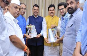 बंद कमरे में मीटिंग से पहले उद्धव ठाकरे ने अपने विधायक बेटे आदित्य ठाकरे के साथ मुख्यमंत्री देवेंद्र फड़नवीस और विधान परिषद के सभापति राम शिंदे से मुलाकात की। इस मुलाकात के दौरान उद्धव ठाकरे ने मुख्यमंत्री देवेंद्र फडणवीस और राम शिंदे को अलग-अलग संपादकों द्वारा मराठी भाषा और हिंदी की अनिवार्यता के संदर्भ में लिखे हुए संपादकीय और स्तंभ के संकलन की पुस्तक भेंट की।
