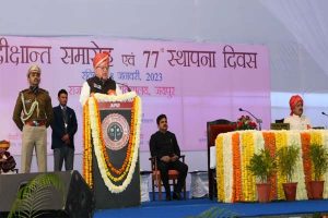 राज्यपाल मिश्र रविवार को राजस्थान विश्वविद्यालय के कन्वेंशन सेंटर में विश्वविद्यालय के 77 वें स्थापना दिवस के अवसर पर आयोजित 32 वें दीक्षान्त समारोह में सम्बोधित कर रहे थे। उन्होंने इस अवसर पर राजस्थान विश्वविद्यालय के केन्द्रीय पुस्तकालय भवन के सामने स्थित उद्यान में शिला पट्टिका का अनावरण कर संविधान उद्यान का शिलान्यास किया। कुलाधिपति ने विश्वविद्यालय के गौरवमयी इतिहास की चर्चा करते हुए सभी को संविधान उद्यान के शिलान्यास की बधाई दी। उन्होंने कहा कि विश्वविद्यालयों में पढ़ने वाले युवाओं को संविधान से जुड़े अधिकारों के साथ मौलिक कर्तव्यों और इसकी महान संस्कृति के बारे में जानकारी हो, इस उद्देश्य से राज्य के सभी वित्तपोषित विश्वविद्यालयों में संविधान उद्यान बनाने की पहल की गई है। उन्होंने कहा कि राज्यपाल बनने के बाद से ही उनकी मंशा रही है कि संविधान से जुड़ी संस्कृति का अधिकाधिक प्रसार हो। उन्होंने कहा कि राजभवन में लोकार्पित संविधान उद्यान में भी संविधान की संस्कृति को विविध कला-रूपों में जीवंत किया गया है।