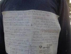 बृजेन्द्र ने मरने के पहले सुसाइड नोट में इसका जिक्र किया है और उसी कागज को सीने पर चिपका कर फंदे पर झूल गया। निवाड़ी जिले के तरिचर कलां क्षेत्र के बड़ी माता मंदिर (Badi Mata Mandir) के पास बृजेंद्र राय नामक युवक ने पहले कागज पर खुदकुशी (suicide) करने की वजह लिखी। फिर उसी कागज को अपने सीने पर चिपका कर फांसी लगा ली।