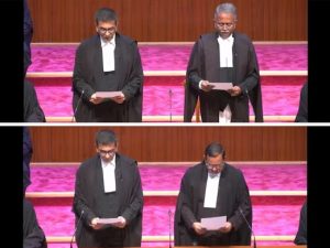 नई दिल्ली: देश की सर्वोच्च अदालत को आज यानी शुक्रवार को दो नए जज मिल गए. जस्टिस उज्ज्वल भुइयां और जस्टिस एस वेंकटनारायण भट्टी ने आज सुप्रीम कोर्ट के जज के रूप में शपथ ली. भारत के प्रधान न्यायाधीश (CJI) न्यायमूर्ति डीवाई चंद्रचूड़ ने शीर्ष अदालत के सभागार में आयोजित शपथ ग्रहण समारोह में दोनों नए न्यायाधीशों को पद एवं गोपनीयता की शपथ दिलाई.