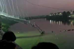 मच्छू नदी के ऊपर बना झूलता पुल रविवार को ढह गया, जो वहां मौजूद संख्या से अधिक लोगों का भार सहन करने में असमर्थ था। वहीं ओरेवा समूह के एक प्रवक्ता ने कहा, “हम अधिक जानकारी की प्रतीक्षा कर रहे हैं। प्रथम दृष्टया पुल ढह गया, क्योंकि पुल के मध्य भाग में बहुत से लोग इसे एक तरफ से दूसरी तरफ ले जाने की कोशिश कर रहे थे।”