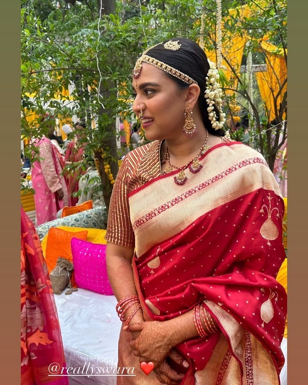 दुल्हन के जोड़े में खूबसूरत दिखीं स्वरा