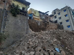 दीवार से सटे धर्मस्थल को बचाकर तोडफ़ोड़ के चलते भारी एहतियात