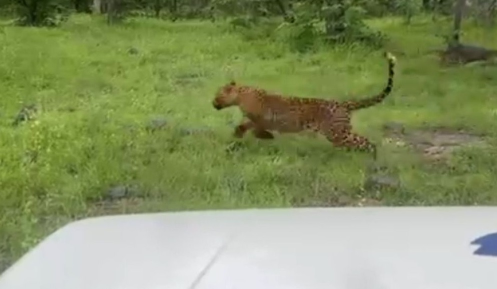 • पिंजरे का फाटक खुलते ही तेंदुए ने जंगल मे लगाई छलांग