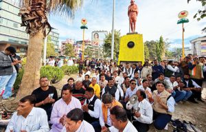 इन्दौर: मनरेगा का नाम बदलने पर प्रदर्शन