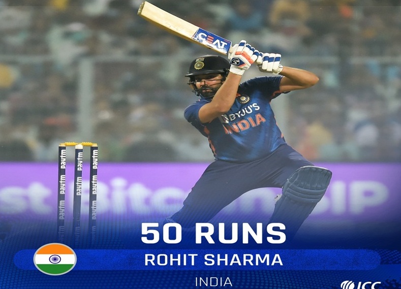 रोहित शर्मा ने टॉस जीतकर पहले बल्लेबाजी का फैसला किया। पहले पारी की शुरुआत करने उतरे रोहित शर्मा और ईशान किशन ने धुंआधार बल्लेबाजी की। इन दोनों ने 6 ओवरों में ही 65 से ज्यादा रन बना दिए। लेकिन 69 के निजी स्कोर पर ईशान किशन कैच आउट हो गये। उन्होंने 21 गेंदों में 29 रन बनाये। इनके बाद उतरे सूर्यकुमार यादव और ऋषभ पंत भी टिक नहीं सके और मारने के चक्कर में विकेट दे बैठे। 31 गेंदों में 56 रन बनाकर रोहित शर्मा भी आउट हो गये। श्रेयस अय्यर और वेंकटेश अय्यर ने जरुर पारी संभाली और तेज गति से रन बनाये। श्रेयस ने 25 और वेंकटेश ने 20 रनों का योगदान दिया। आखिर के ओवरों में हर्षल पटेल और दीपक चाहर ने शानदार बल्लेबाजी करते हुए टीम का स्कोर 184 रनों तक पहुंचा दिया। न्यूजीलैंड की ओर से सैंटनर सबसे सफल गेंदबाज रहे। उन्होंने 4 ओवरों में 27 रन देकर 3 विकेट लिए।