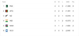 अब अफगानिस्तान को सेमीफाइनल क्वालीफाई करने के लिए अपने आखिरी ग्रुप गेम में न्यूजीलैंड को हराना होगा, और फिर भी उस मैच में जीत पर्याप्त नहीं हो सकती है, हालांकि उनके पास अभी भी ग्रुप में बेस्ट नेट रन रेट है.