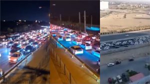 सोशल मीडिया पर वायरल हो रहे वीडियो में ईरान की राजधानी तेहरान से भारी संख्या में लोगों के पलायन की तस्वीरें सामने आई हैं.पेट्रोल पंपों पर लंबी-लंबी कतारें लगी हैं और प्रमुख सड़कों पर ट्रैफिक जाम की स्थिति बनी हुई है. राजधानी छोड़कर लोग उत्तर दिशा की ओर, खासतौर पर कैस्पियन सागर की तरफ जाने वाले रास्तों पर निकल रहे हैं, जिससे वहां वाहनों की भारी भीड़ देखी जा रही है. हालात अफरा-तफरी के हैं.