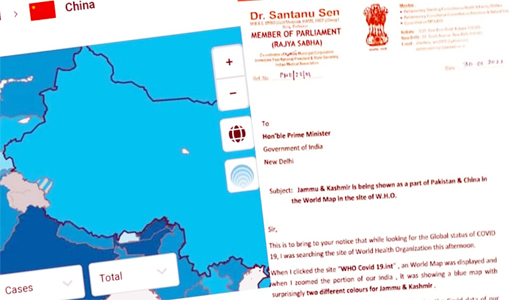 • WHO ने जम्‍मू-कश्‍मीर को बताया पाकिस्‍तान और चीन का हिस्‍सा, टीएमसी ने जतायी आपत्ति, लिखी पीएम मोदी को चिट्ठी